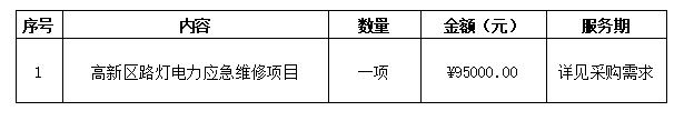 2、项目名称:高新区路灯电力应急维修项目
